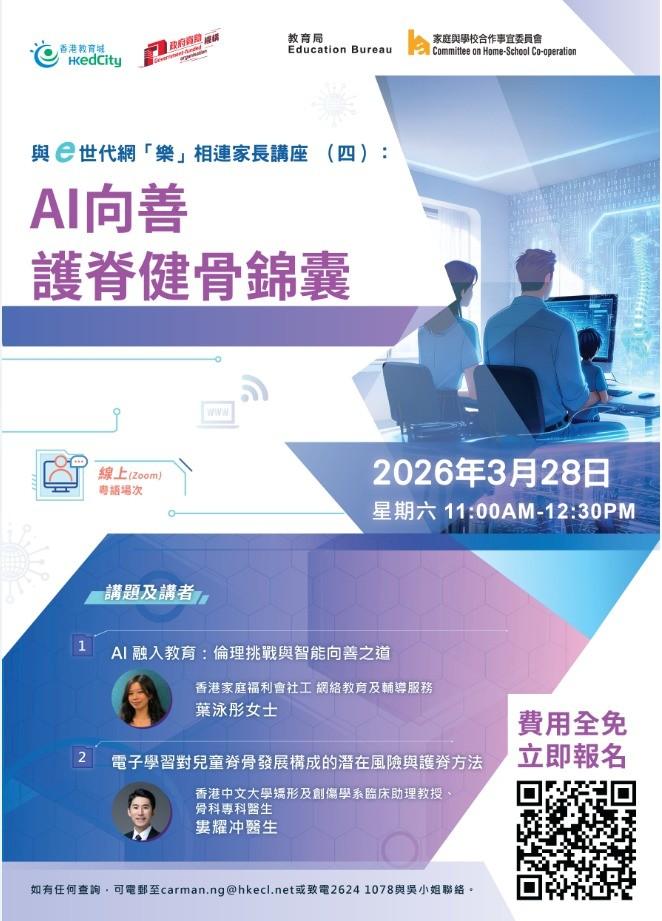 學校提供家長相關的教育子女資源、參考資料和課程,使家長可以輕鬆地獲取所需的正向教育子女的知識和資訊。歡迎家長自行瀏覽以下資訊,並踴躍參加,藉以協助大家促進子女正向人生的發展。